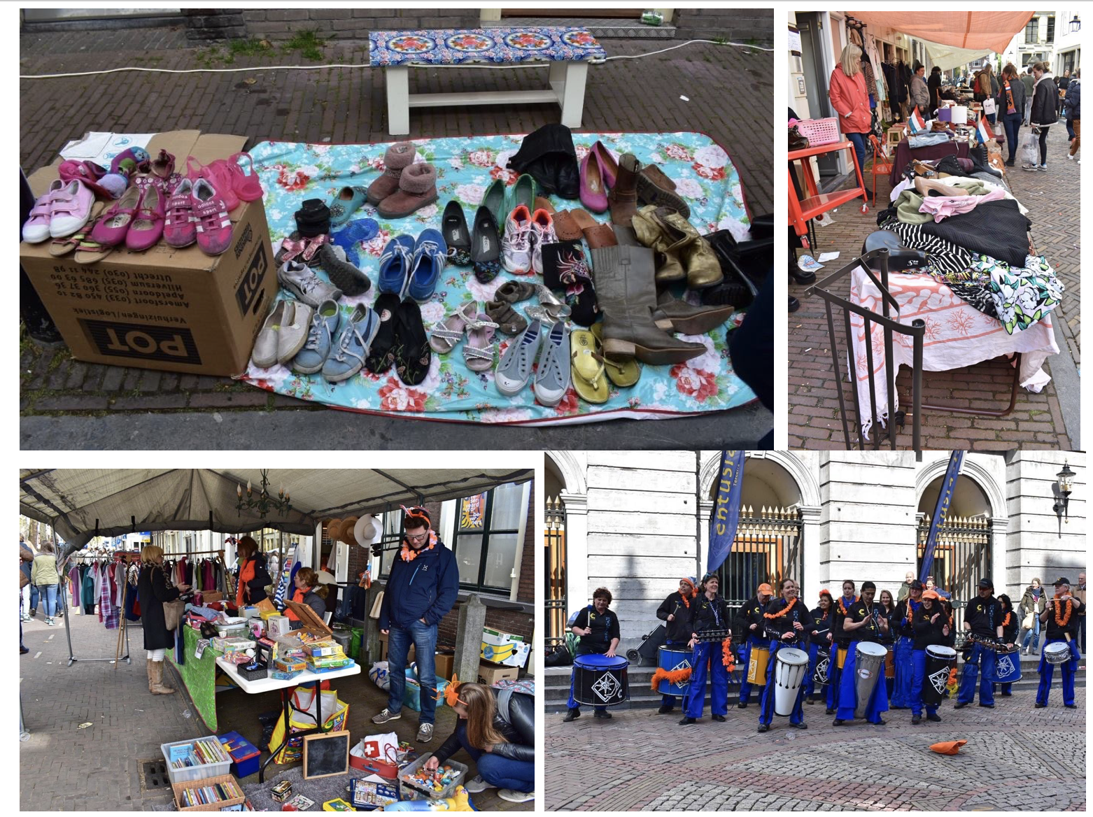 Tidak hanya barang bekas, di banyak kota-kota pasti akan banyak di temukan hiburan yang di selenggarakan oleh rakyat-rakyat setempat. Dan kota Utrecht, tidak kalah ramainya dengan kota-kota besar lainnya di saat Hari Raja atau Koninginsdag.