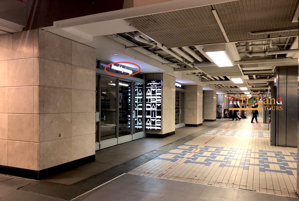 1. perhatikan papan gantung warna biru yang bertuliskan kata “Amstelpassage”.